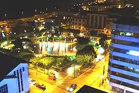 ![]() Vista nocturna hacia la plaza desde la esquina de las calles O'Higgins y Urmeneta (2011) | ||