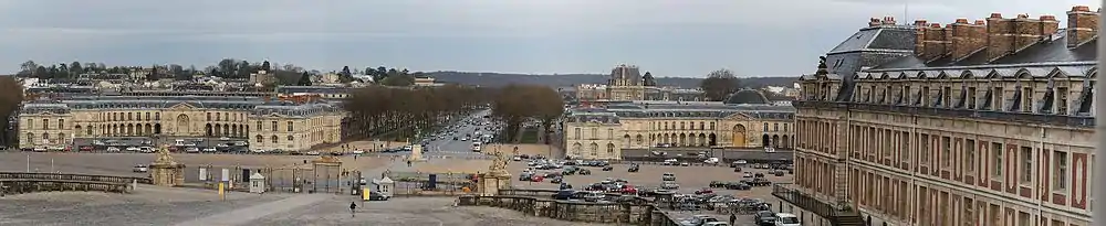 - Este artículo deriva de la traducción de fr:Place d'Armes (Versailles), de Wikipedia en francés, bajo licencia GFDL y CC-BY-SA 3.0.
