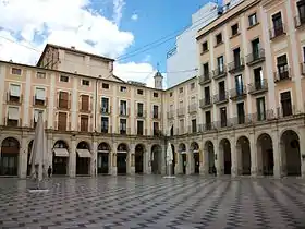 La plaza de Dins de Alcoy (Alicante), Comunidad Valenciana, fue construida a mediados del siglo XIX. Se trata de un conjunto neoclásico de planta trapezoidal con arquerías de medio punto en plantas bajas por las que se accede a los diez edificios que la componen, construido en el espacio del claustro del antiguo convento de San Agustín de Alcoy.