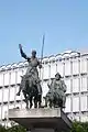 En el centro de la plaza se encuentran las estatuas de Don Quijote de la Mancha y Sancho Panza, réplicas exactas de las estatuas instaladas en la plaza de España de Madrid, obras del escultor español Lorenzo Coullaut Valera. La estatua de Don Quijote mide 4,50 metros de alto y la de Sancho Panza mide 3,70 metros y juntas pesan unas tres toneladas.[2] Las estatuas fueron un regalo de la capital española a la ciudad de Bruselas y fueron inauguradas en mayo de 1989. Las estatuas costaron 15 millones de pesetas.[1]
