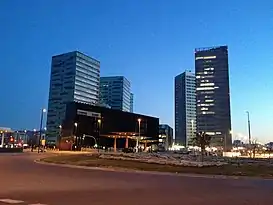 Está plaza tiene un diseño futurista, incluyendo, entre otros, la Torre Realia BCN y el Hotel Porta Fira, obra de los arquitectos Toyō Itō y Fermín Vázquez Huarte-Mendicoa; la Torre Inbisa de Nicanor García, las Torres residenciales de Alonso y Balaguer, el edificio Copisa de Óscar Tusquets y el Hotel Catalonia de Jean Nouvel.