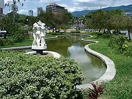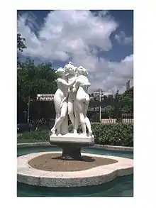En el extremo sur del espejo de agua un conjunto escultórico de pequeñas dimensiones que otorga significación al espacio y define el lugar. Es obra del escultor italiano Pietro Ceccarelli, quien copió la obra Las tres Gracias de Antonio Canova.