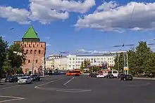 La plaza conecta las calles céntricas de la ciudad: Bolshaya Pokróvskaya, Varvarskaya, Uliánov, Minin, terraplén del Alto Volga y Zelenski descenso. Hay muchos monumentos arquitectónicos, la Universidad de Minin, Universidad de Lobachevski y la Universidad Médica; Monumentos a Minin, Chkálov; Complejo de Exposiciones, así como la primera fuente de la ciudad.