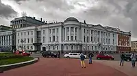 Después de la construcción del nuevo edificio de la Duma de la Ciudad (El Palacio del Trabajo) en 1904, la Biblioteca de la Ciudad se trasladó a la sede del Ayuntamiento. En 1904-1905 la entrada principal se diseñó en forma de un pórtico con un ático, dos pilastras y pequeños bustos de bronce de Tolstoi, Pushkin y Dostoievski en nichos redondos en la parte superior.