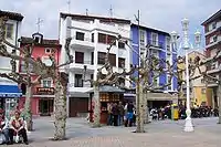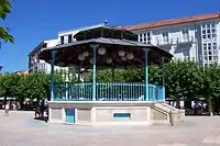 Después fue apareciendo el mobiliario urbano: una farola de varios focos asentada sobre una base circular que formaba una rosa de los vientos a la que el pueblo bautizó como la Estrella. Más tarde se plantaron árboles y se pusieron más farolas de hierro colado, bancos para sentarse[nota 1] y un kiosco o templete para la música.[1]