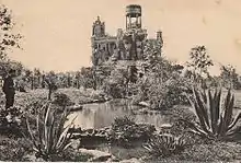 El mercado de frutos y las carretas continuaron hasta 1885, fecha en la que el intendente Torcuato de Alvear ordenó su clausura para embellecer la zona abriendo una plaza.[cita requerida] Al mismo tiempo, el Ferrocarril del Sud comenzó la construcción del nuevo edificio de la Estación Constitución, inspirado en un palacio francés. El arquitecto municipal Juan Antonio Buschiazzo diseñó un paseo con muchos árboles, jardines, un lago artificial con un pequeño puente y hasta una falsa ruina de un castillo fantástico que llamó mucho la atención y fue objeto de muchas críticas y burlas incluso desde los diarios.[3][4] Esta extraña estructura sería demolida en 1914, cuando la Compañía Anglo Argentina de Tranvías inició la construcción de una línea de subterráneos que luego fue abandonada.
