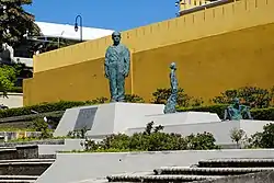 Monumento a José Figueres Ferrer: se trata de un conjunto escultórico compuesto de 4 elementos: la estatua de José Figueres Ferrer (3 m de altura), una niña con un instrumento musical (1.82 m), un niño sentado acompañado de unos libros (82 cm), y un cañón. Conmemora al tres veces presidente de Costa Rica José Figueres Ferrer, quien en 1949 abolió el ejército de Costa Rica en este sitio. La obra fue esculpida por Marisel Jiménez en 1998, luego fue retirado del sitio para remodelar la plaza, colocándose de manera temporal en los jardines del Museo Nacional. En 2014, se firmó un decreto ejecutivo para recolocar el monumento en su sitio original, lo que se llevó a cabo el 1° de diciembre de 2016 durante la conmemoración del día nacional de la Abolición del Ejército.[2]
