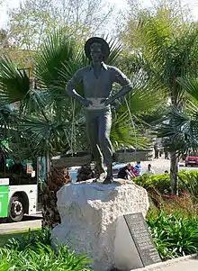 En la plaza de la Marina se ubica actualmente la escultura de El Cenachero, tras varios traslados.