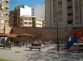 Plaza ajardinada, situada entre dos calles peatonalizadas. La separación entre la calle de la derecha, es un trozo de muralla.