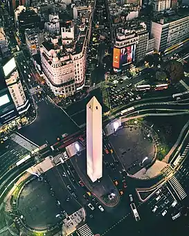La Plaza de la República está ubicada en la intersección de las avenidas 9 de Julio y Corrientes, está rodeada por varias pantallas de LED y Neón que animan la ciudad de Buenos Aires, Argentina. En esta plaza se erige el Obelisco de Buenos Aires.
