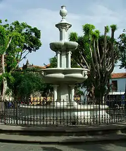 La fuente central es de mármol es el elemento más característico de esta plaza y es la más antigua y estética de las existentes en el casco histórico lagunero. Fue encargada a Marsella (Francia), de donde la embarcaron, con destino a La Laguna, el 20 de marzo de 1869 por la Sociedad Ghirlanda Hermanos a bordo del barco "Marie Honoré". Su peso se estima que es de 30 toneladas. Está hecha a base de tazas superpuestas que sostienen esbeltas columnitas y no faltan los mascarones con motivo ornamental. Fue colocada en 1870.[1]