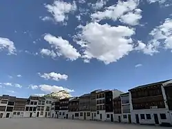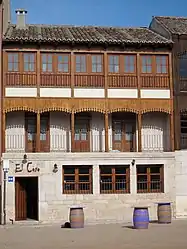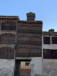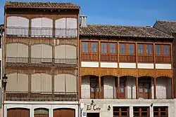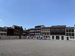 Conocida como "Corro" o "Corro de los toros", su existencia se encuentra documentada desde la Edad Media. Conformada por 48 edificios, se accede a ella por dos calles. Bordea un espacio de 3500 m². Los balcones de la plaza, adintelados, se realizaron en los siglos XVIII y XIX, en madera, y se encuentran decorados con motivos arabescos. La función de estos balcones desde su origen hasta hoy es la de servir de lugar para presenciar los espectáculos.