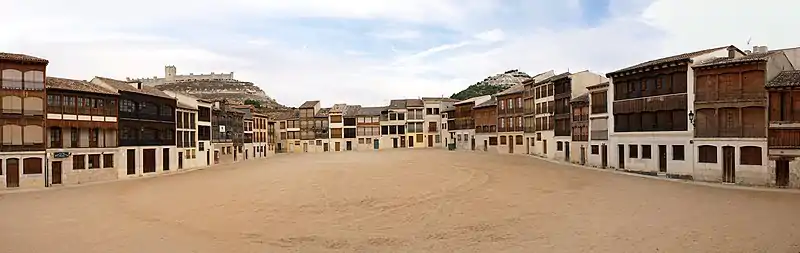 Actualmente se atribuye a esta plaza el ser «una de las primeras plazas mayores de España», dada por su singularidad. Su emplazamiento no constituye un espacio en el que preside un ayuntamiento, concejo o una iglesia parroquial. Su construcción se realizó desde antiguo para fines lúdicos, entre los que destacaban las justas y torneos medievales y posteriormente las sueltas y corridas de toros.