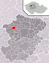 Se encuentra ubicada al noroeste de la región y de Praga, a poca distancia al norte del río Berounka —un afluente izquierdo del río Moldava—, y cerca de la frontera con la región de Ústí nad Labem.[1]