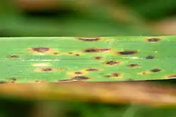 ![]() Cochliobolus sativus en una hoja de trigo | ||