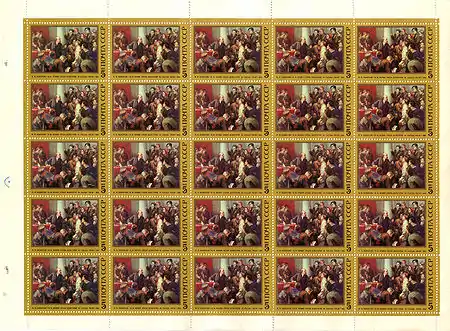 Las dimensiones del pliego de estampillas (determinadas por la geometría) debe distinguirse el valor del pliego de estampilas, que está determinado por el número de sellos (o estampillas) en la Ger. desde el punto de vista formal el pliego de estampillas de mínimo valor aparece como block souvenir de un sello. El pliego de estampillas de valor máximo, habido, fue emitido en el Reino Unido en 1870: comprendiendo 480 sellos.[1]