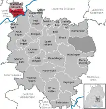 Se encuentra ubicado en el centro del estado, en la región de Tubinga, en la zona montañosa del Jura de Suabia, entre los ríos Neckar —al norte— y Danubio —al sur—.