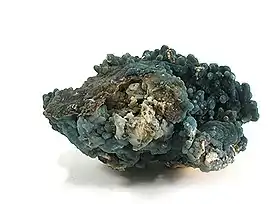 Comúnmente tiene un aspecto de costras o masas, que pueden ser botroidales, rehiformes, estalactíticos o globulares, frecuentemente en estructuras concéntricas; también puede encontrarse en forma masiva compacta de cirstales indistinguibles. Puede formar fibras radiales o esferulíticas. Puede parecerse a gotas o revestimientos de goma, de donde le viene su nombre.
