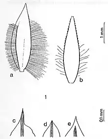 - (en inglés)Watson L, Dallwitz MJ. (2008). «The grass genera of the world: descriptions, illustrations, identification, and information retrieval; including synonyms, morphology, anatomy, physiology, phytochemistry, cytology, classification, pathogens, world and local distribution, and references». The Grass Genera of the World. Consultado el 5 de marzo de 2010.