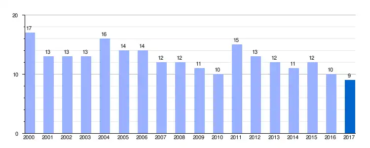 Gráfica de evolución demográfica de Población de Arreba entre 2000 y 2017 |