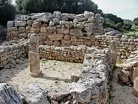 La singularidad del poblado viene dada por la presencia de un edificio rectangular de arquitectura ciclópea muy diferente de la de los talayots. El edificio ha sido objeto de atención por parte de la comunidad científica por su posible relación con el reclutamiento de tropas mercenarias especialmente en el siglo III a. C. Además de este edificio singular, el yacimiento presenta restos de una muralla y de dos talayots en muy buen estado de conservación, uno circular y otro cuadrado, este último con restos de su cubierta de losas de piedra, lo que lo convierte en uno de los escasos ejemplos de cubiertas conservadas en el mundo talayótico. Además, el yacimiento, objeto de una adecuación para la visita los años 2005-06, presenta una fase naviforme anterior y reocupación de la Antigüedad tardía y de Época medieval.