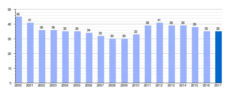 Gráfica de evolución demográfica de Pobladura de Somoza entre 2000 y 2017 |