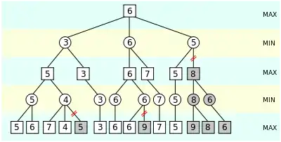 Esta búsqueda alfa-beta va actualizando el valor de los parámetros según se recorre el árbol. El método realizará la poda de las ramas restantes cuando el valor actual que se está examinando sea peor que el valor actual de α o β para MAX o MIN, respectivamente.
