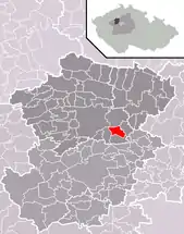 Se encuentra ubicada al noroeste de la región y de Praga, a poca distancia al norte del río Berounka —un afluente izquierdo del río Moldava—, y cerca de la frontera con la región de Ústí nad Labem.[1]