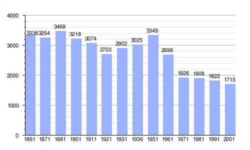 Gráfica de evolución demográfica de Poggioreale entre 1861 y 2001 |