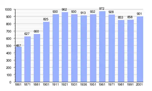 Gráfica de evolución demográfica de Pognana Lario entre 1861 y 2001 |