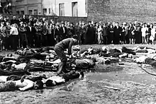 El pogromo de Kaunas fue una masacre de judíos que vivían en Kaunas, Lituania, que tuvo lugar del 25 al 29 de junio de 1941; los primeros días de la Operación Barbarroja y la ocupación nazi de Lituania. El incidente más infame ocurrió en el garaje de la sección Kaunas de la NKVD, un garaje nacionalizado de Lietūkis, donde varias docenas de hombres judíos, supuestamente relacionados con la NKVD, fueron torturados públicamente y ejecutados el 27 de junio frente a una multitud de hombres, mujeres y niños lituanos. El incidente fue documentado por un soldado alemán que fotografió el evento cuando un hombre, apodado el "Death Dealer", golpeó a cada hombre hasta matarlo con una barra de metal. Después de junio, se llevaron a cabo ejecuciones sistemáticas en varios fuertes de la Fortaleza de Kaunas, especialmente en el Séptimo y Noveno Fuerte . [1]
