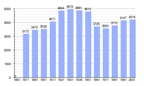 Gráfica de evolución demográfica de Poiana Maggiore entre 1861 y 2001 |