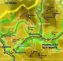 Poienile de sub Munte es una Comuna Municipal situada al norte de Rumanía muy cerca de la frontera con Ucrania, en la provincia (judeţ)[2] de Maramureş, en el valle de Ruscova. El lugar donde se halla es verdaderamente un paraíso de la naturaleza. Su principal seña de identidad, es, sin lugar a dudas, la composición de su población. Poienile, junto con sus localidades vecinas de Repedea y Ruscova, forman un pequeño territorio de etnia y lengua ucraniana. Su aislamiento de muchos siglos ha formado a unas gentes singulares con tradiciones y costumbres diferentes del resto de Maramures. La naturaleza, con los Montes de Maramures, los bosques, lor ríos y una vegetación exuberante y un aire limpio hace que este lugar pueda ser uno de los más bellos y desconocidos de Europa.