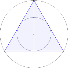Cada triángulo es bicéntrico.[1] En un triángulo, los radios r y R de su circunferencia inscrita y de su circunferencia circunscrita respectivamente están relacionados por la ecuación