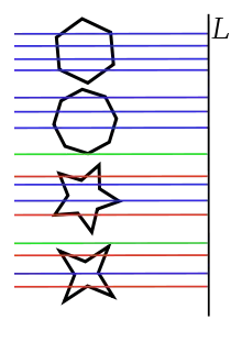 Se dice que un polígono es monótono respecto a una recta L si cualquier línea ortogonal a L corta al polígono a lo sumo en dos puntos.[1][2][3] Un polígono se considera fuertemente monótono si lo es respecto a cualquier recta del plano, y simplemente monótono si lo es de respecto de alguna recta del plano.
