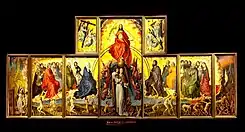 La obra es propia de la época de madurez de van der Weyden, cuando se había establecido como pintor oficial de la ciudad de Bruselas y su fama se había divulgado por toda Europa. Es la obra más ambiciosa del maestro, tanto por sus dimensiones como por su complejidad iconográfica, estética y compositiva. El cromatismo es espectacular, especialmente en los ropajes. La ejecución está cuidada hasta los más mínimos detalles, siguiendo el estilo propio de la pintura flamenca de su época. La división en paneles no impide la concepción unitaria del conjunto, a través de numerosos recursos, como la marcada simetría, la continuidad de ciertas líneas (perfil de las nubes doradas, trazado del arco iris) y la disposición de ciertas masas (los diferentes grupos de santos, condenados y bienaventurados).[13]