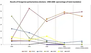 Foro Demócrata Húngaro (MDF, Magyar Demokrata Fórum) | neoconservador, democracia cristiana | 5,04% |