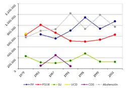 PSOE | 622.971 | 808.350 | 663.837 | 510.114 | 496.773 | 534.700 | 625.148 | 486.826 | 364.600 | 249.152 | 223.582 |