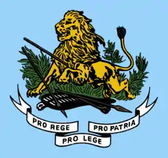 en latín, Pro rege, pro lege, pro patria Por el Rey, Por la Ley, Por la Patria | |