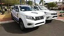Las patrullas de la Policía Nacional consisten en: motocicletas, camionetas de doble cabina y camiones. Las marcas de los vehículos varían entre Toyota, Mazda, Isuzu, Nissan, Ford y Volkswagen.