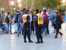 Efectivos de la Policía de San Juan en la plaza principal de la ciudad capital de la provincia