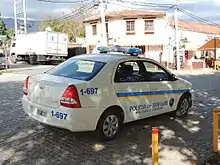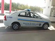 Patrullero de la Policía de San Luis en la Ciudad Villa de Merlo
