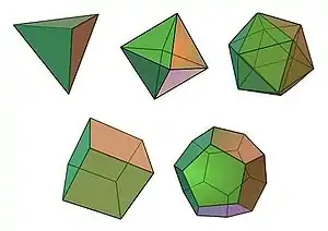 - Los nueve poliedros regulares forman pares duales, siendo el tetraedro auto dual.