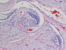 Un poliembrioma es un tipo de tumor de células germinales mixto extremadamente raro[1] en el que aparecen cuerpos embrioides similares a embriones reales de entre trece y dieciocho días de gestación[2] en un estroma mixoide (o fibroso, a veces) ocasionalmente con hemorragia abundante.[3] Puede haber poliembriomas ováricos o testiculares.[4] Fue descrito en 1936 por el médico francés Albert Peyron, quien le dedicó diecisiete artículos hasta 1941.[4] El origen del término es incierto, pero aparece en los documentos de una reunión en Zúrich en 1971 y en la clasificación de tumores testiculares de la OMS de 1977.[5]