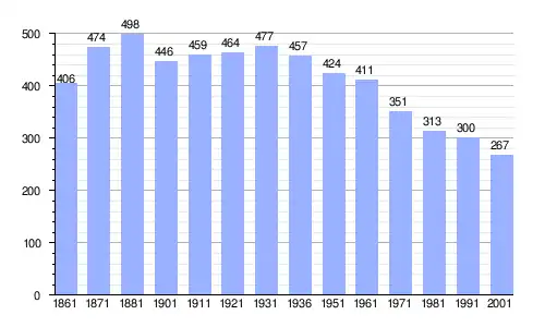 Gráfica de evolución demográfica de Polino entre 1861 y 2001 |