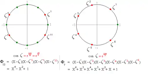 - El grado del n-ésimo polinomio ciclotómico viene dado por la función φ de Euler: .