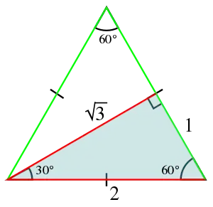Cuando se aprende trigonometría, rápidamente se ve que el coseno y el seno de las medidas de ciertos ángulos tienen una forma particular, que involucra raíces cuadradas. Así, para un ángulo de de 30 grados, es decir, π/6 radianes, el teorema de Pitágoras permite demostrar que: