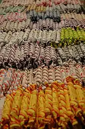 Se encuentra en diversas formas, tamaños y colores, pero la versión roja y blanca con sabor a menta es la original.[8]