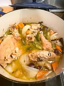 El pollo en cuñete es un platillo típico de Guanajuato, Edomex, Jalisco, Michoacán y Querétaro,[1] en México. Consiste en pollo frito en aceite de oliva y aromatizado con una mezcla de especias, que varía según el lugar, aunque suele incluir laurel, tomillo, orégano, mejorana, pimienta de Tabasco... además de pasas y almendras peladas y trituradas. Frecuentemente se acompaña de una guarnición de papas, cebolla y zanahorias.