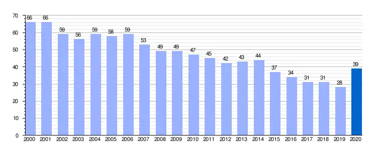 Gráfica de evolución demográfica de Polvorosa de Valdavia entre 2000 y 2020 |